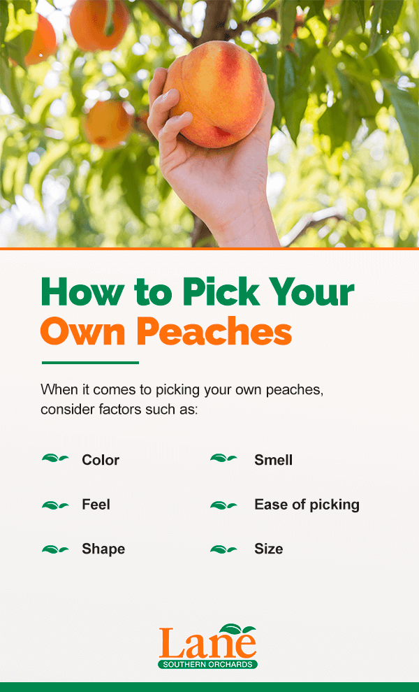 Peaches on the same tree ripen at different speeds. Some types of peaches will even take several harvests to reach the best stage for picking. When it comes to picking your own peaches, consider factors such as: