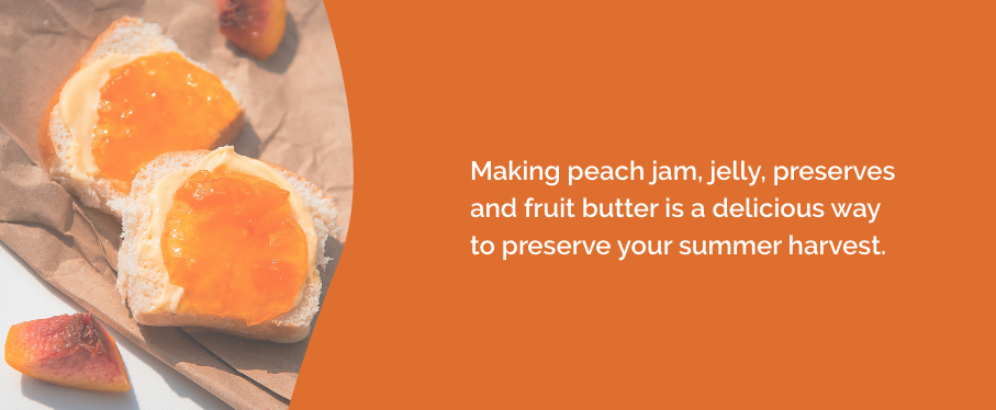 Once you've chosen your favorite recipe, you can follow the directions until the spread is complete. Store your fresh peach treats in the fridge for a few weeks or in the freezer for several months. If you want your spreads to last longer, you can use a water bath canner to seal your jars. Home-canned jams and jellies will last in your pantry for up to a year, retaining the same freshness and flavor as the day you made them.