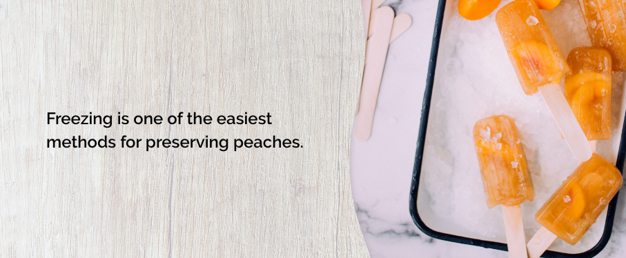 Freezing is one of the easiest methods for preserving peaches. If you have room in your freezer and some plastic containers or storage bags, you can freeze your harvest. Depending on your needs, you can customize the process slightly, like peeling the skin or adding sugar before freezing. The freezing process can be better than canning because it's very easy.
