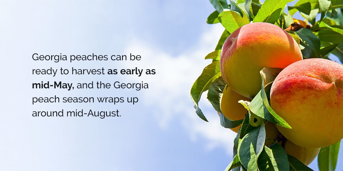 As the Southern belle of peach season, Georgia is usually one of the first states to start selling peaches each year. Due to the state's warm climate, Georgia peaches can be ready to harvest as early as mid-May. The first Georgia peaches to mature are the clingstone variety — the kind of peach with flesh that clings to the pit — starting the state's peach season strong.